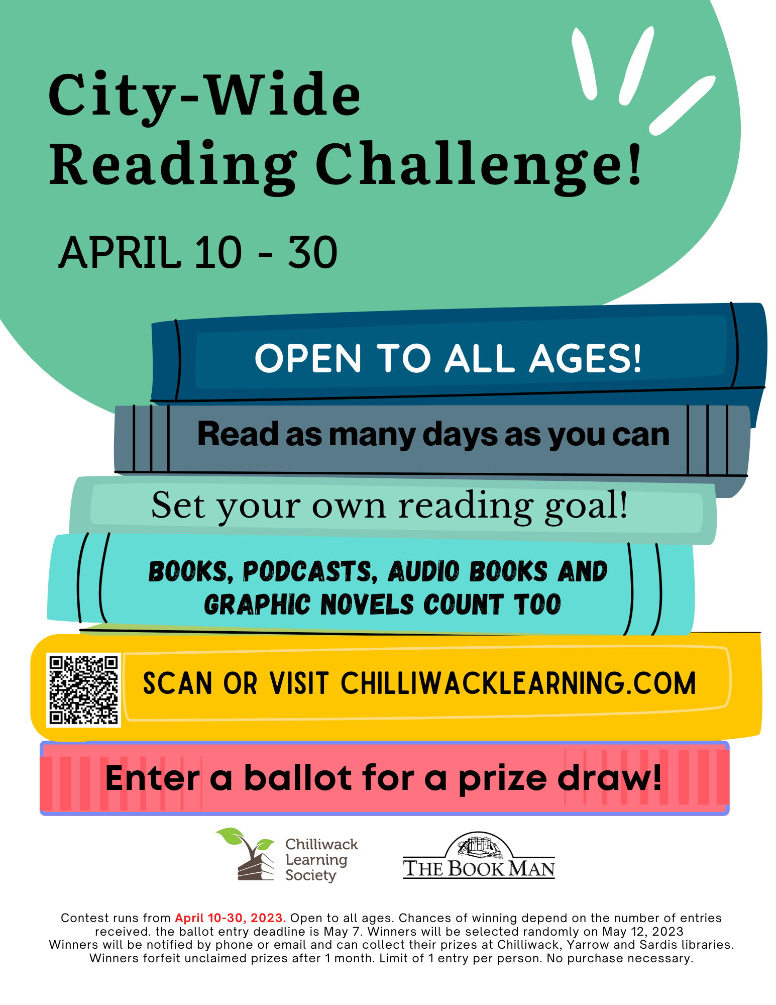 One ballot per participant, please. Prizes will be picked up at Chilliwack, Sardis or Yarrow libraries.