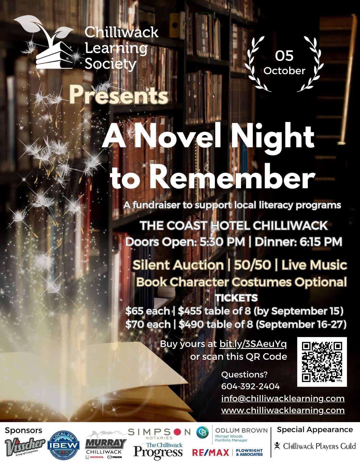 On October 5, we will host A Novel Night to Remember fundraiser at the Coast Chilliwack Hotel.