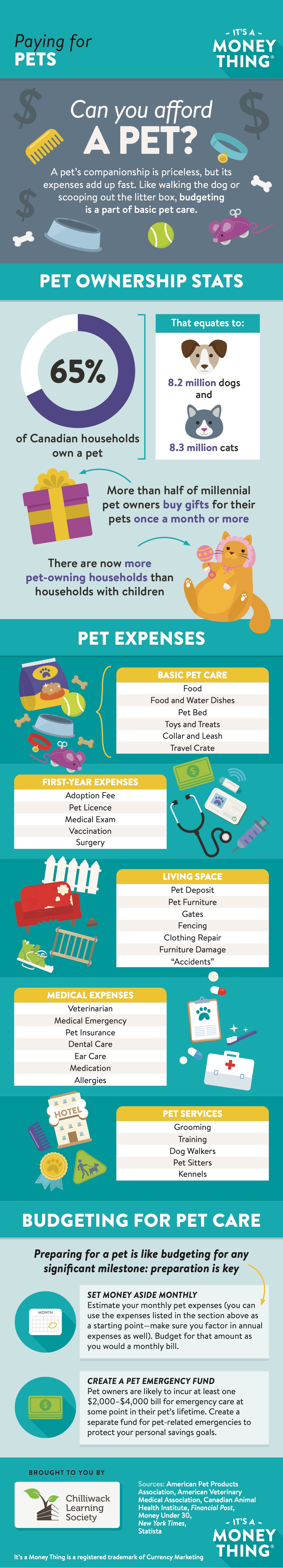 Canadian pet owners spent an estimated $8.23 billion on pets, food, supplies, medical care and pet services in 2017, according to Statistics Canada. Although the love and companionship our furry (or feathered, or scaly) friends provide is priceless, it’s impossible to ignore the effect that pet ownership has on our wallet.
