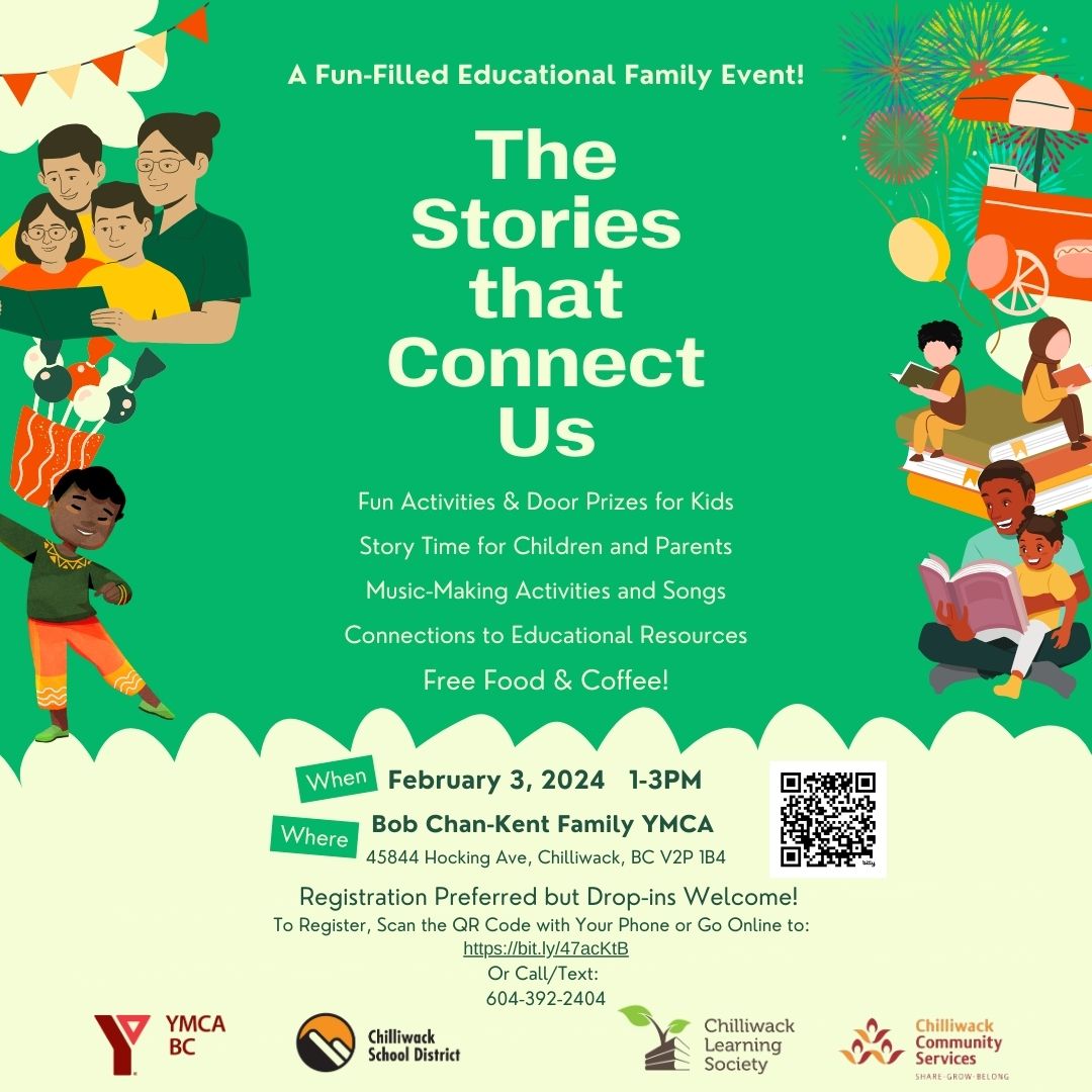 We are collaborating with other Chilliwack service providers to host a free Fun Family Literacy event at the YMCA on Saturday, February 3, 2024 from 1:00-3:00pm.